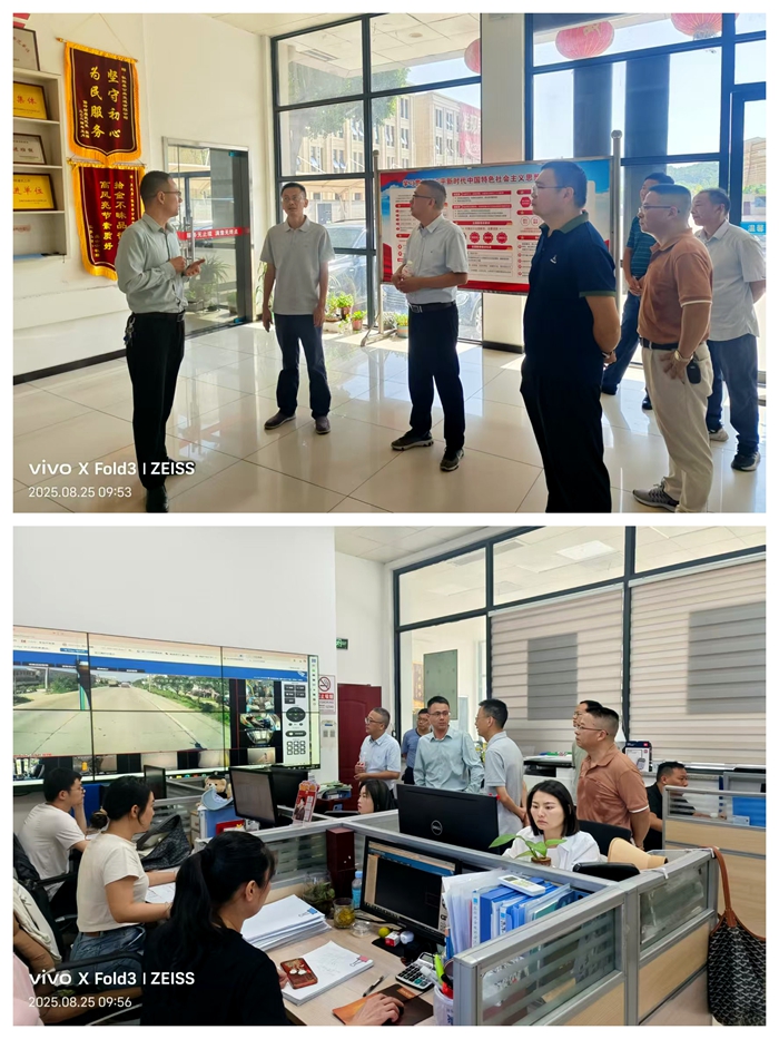 2025年8月25日上午,樅陽縣副縣長吳傳軍一行親臨樅陽公交分公司,實地督察安全生產(chǎn)工作,為公交安全運營與民生服務(wù)工作把脈定向。樅陽公交董事長張文明陪同并匯報安全運營相關(guān)工作。